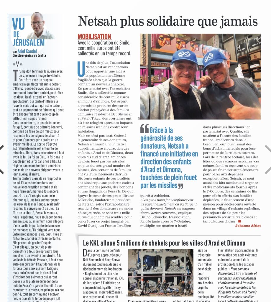 Paru dans la rubrique Communauté du magazine ActuJ (avril 2026), cet article met en lumière l’engagement de Netsah auprès des populations civiles en Israël.